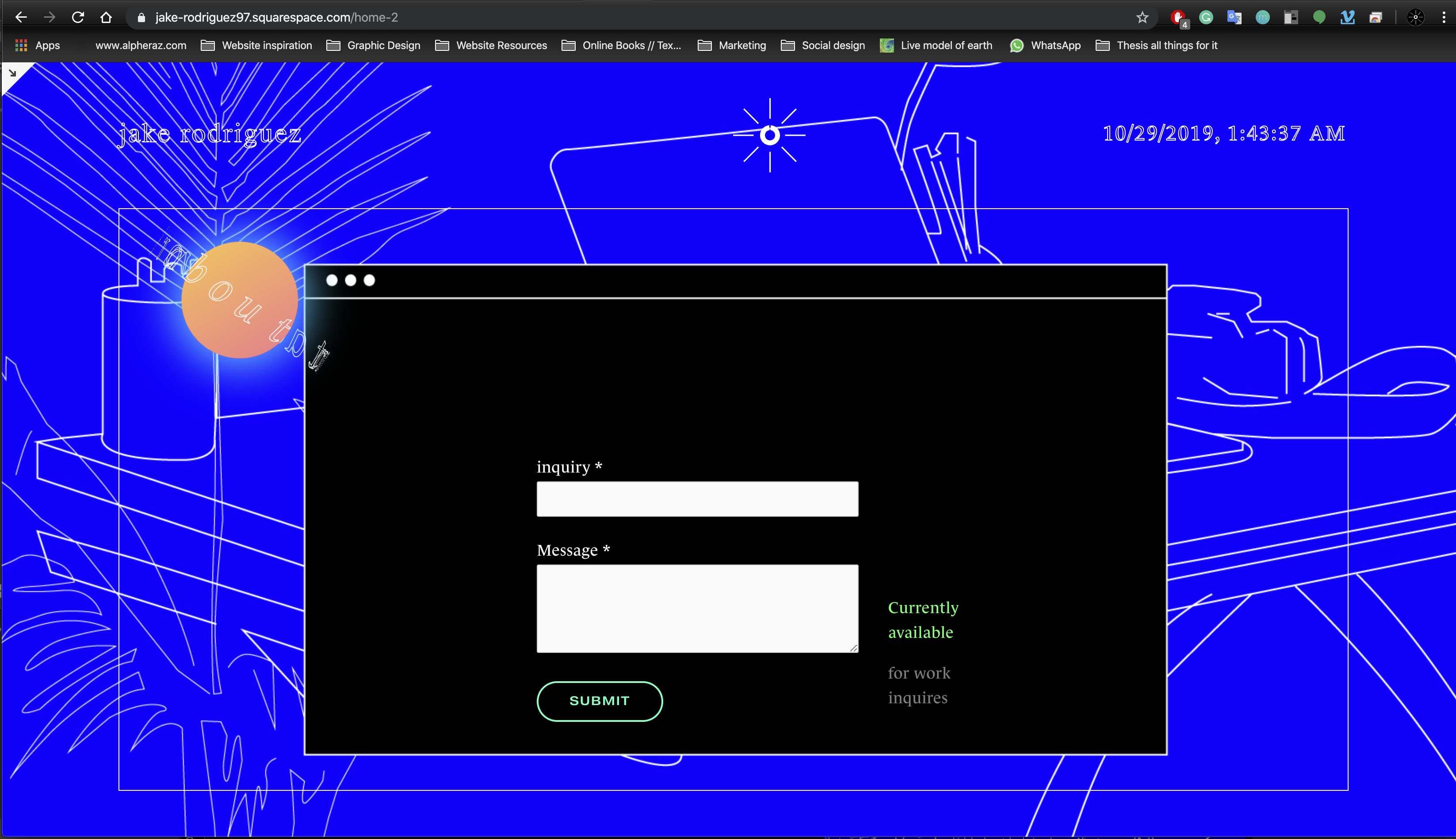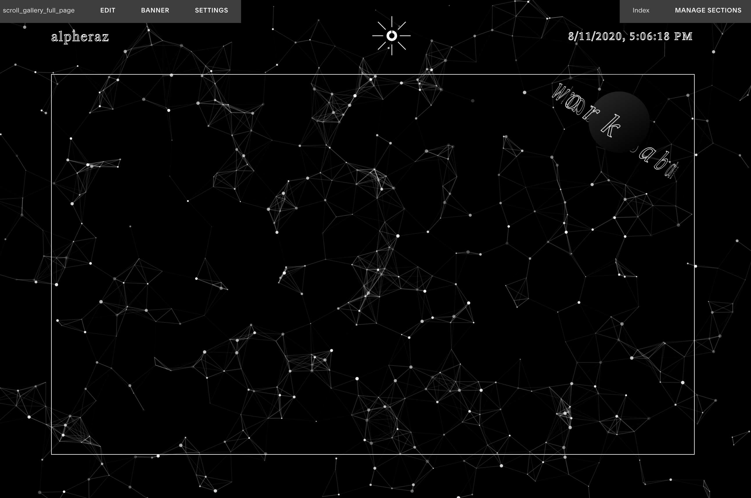 The beginning & end of my personal branding, creating a journey that would make the site more personable & offer a glimpse behind the scenes. After plenty of iterations, the idea eventually was scraped after inaccessibility & trying to maintain the code. I.e background video was interactive, able to click and go to the pages but was impossible to make mobile friendly. The navigation was the rotating sphere, an interactive planet of type. Clicking different points in the room would reveal different projects. The pool offered a play side, and connected to the about section. Initially the home office was to reflect the Alpheraz Studio aspect business/clients, while the pool would be symbolic of my personal design projects i.e research/ art school, this website.